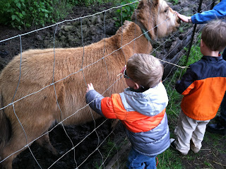 We went to a "farm" with the Toddler Learning Center (the place Jude receives services from) and Jude totally loved it. Hazel really wanted nothing to do with the animals, but Jude was really into it. Unfortunately, his habit of collecting anything on the ground turned into a dirty habit at the farm when he decided to pick up a piece of goose poop and hand it to me. Gross. I ran for the sanitizer.